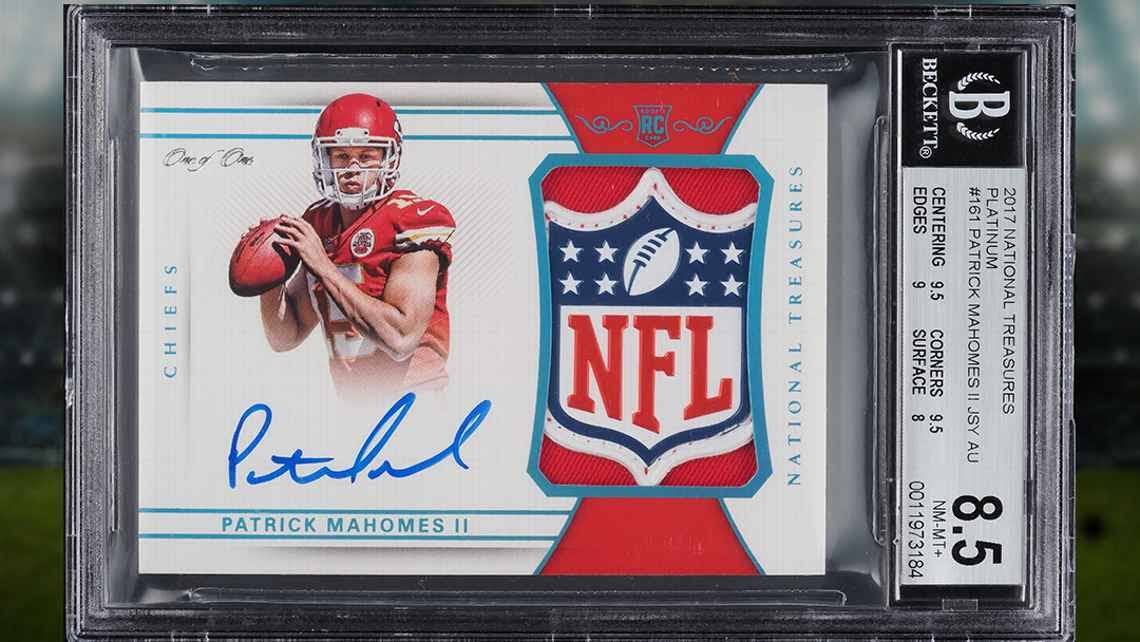 Fig 3: A Patrick Mahomes 2017 Panini National Treasures 1-of-1, NFL shield, autographed, sold for $4.3 million — the most ever paid for a football card — Image courtesy of ESPN