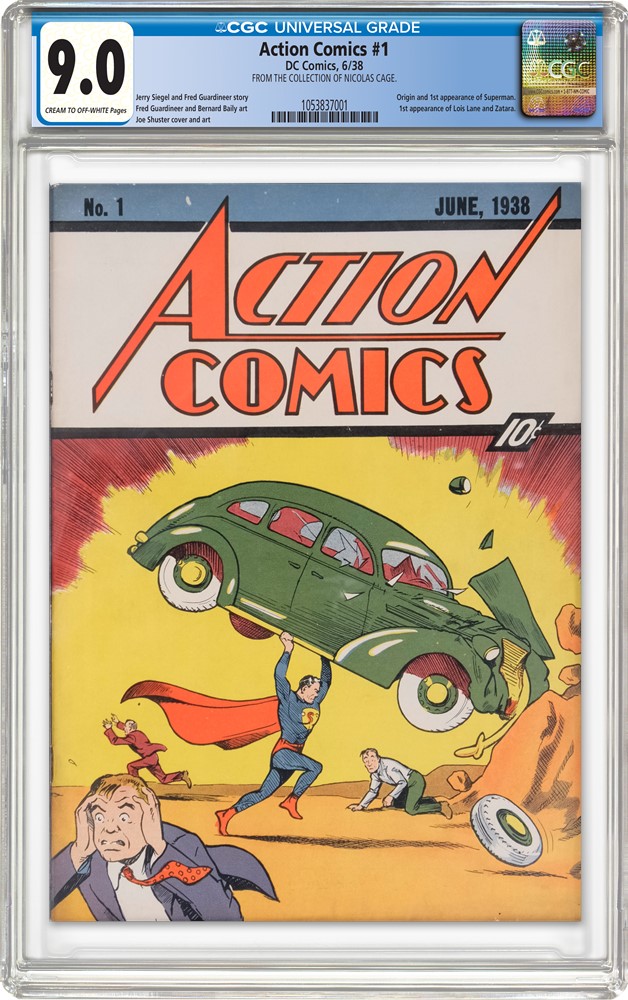 The first appearance of Superman. The comic that launched an industry. And in the case of the Nicolas Cage copy, an object with one of the most extraordinary provenance stories in collecting history — stolen from Cage's home in 2000, recovered in a storage unit eleven years later, and eventually graded at a level that made it the highest-valued copy in existence. At $15 million, it is the most expensive comic book ever sold.